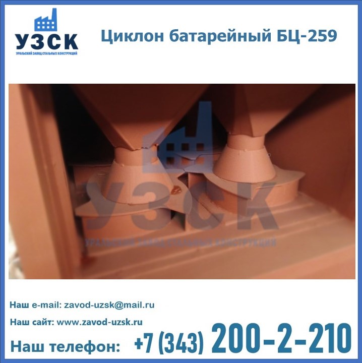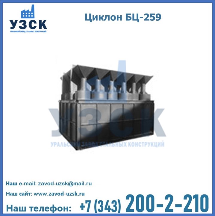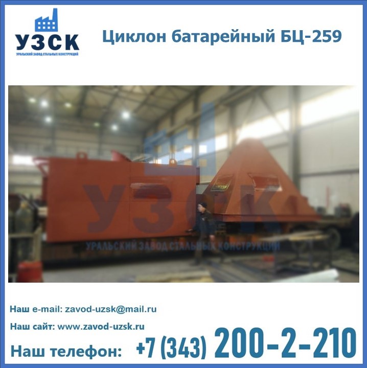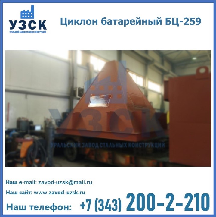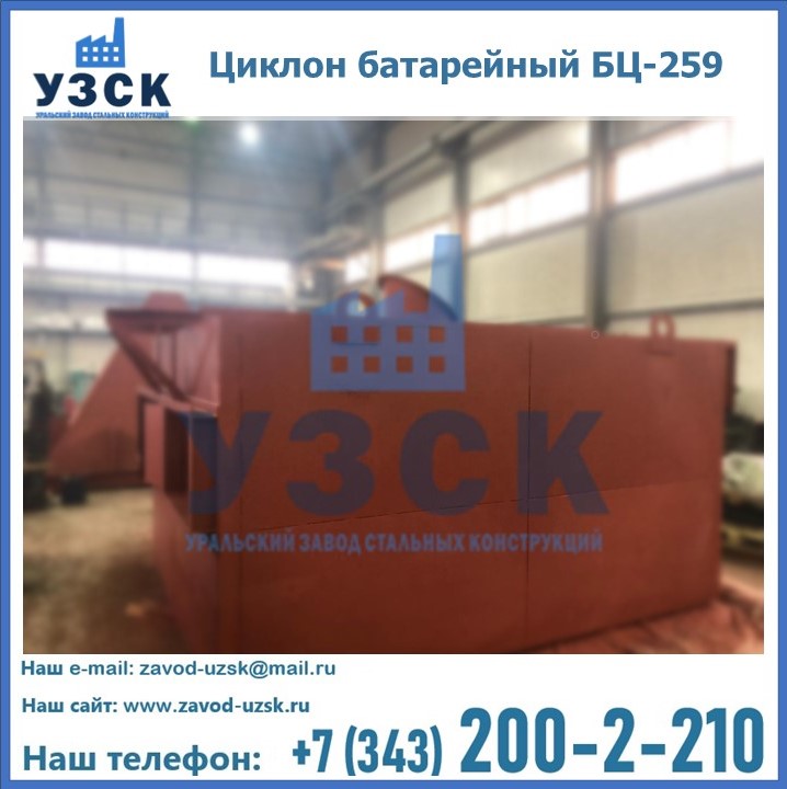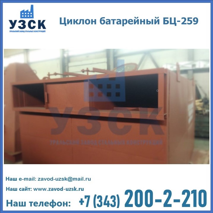 Приобрести качественное оборудование, в том числе, циклоны БЦ-259, можно в компании УЗСК в Краснодаре. Мы предлагаем долговечную и надежную продукцию по приемлемой цене. Заказать и купить циклоны или другие изделия высокого качества можно через сайт Уральского Завода Стальных Конструкций, или позвонив по указанному в разделе «Контакты» телефону.