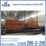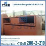 Батарейные циклоны модели БЦ-259 конструируются из нескольких металлических труб (выхлопных отводов), диаметр которых составляет около 26, 9 см. Элементы устанавливаются в параллельной плоскости и объединены корпусом с общей подводкой. Такие трубы предназначены для выхлопа и состоят из специальных заворачивающих лопаток, решетчатых элементов и опорных стоек футляра. Основную наружную панель оснащают патрубком для соединения и вибробункером, помимо этого, на панели устанавливают теплоизоляцию.