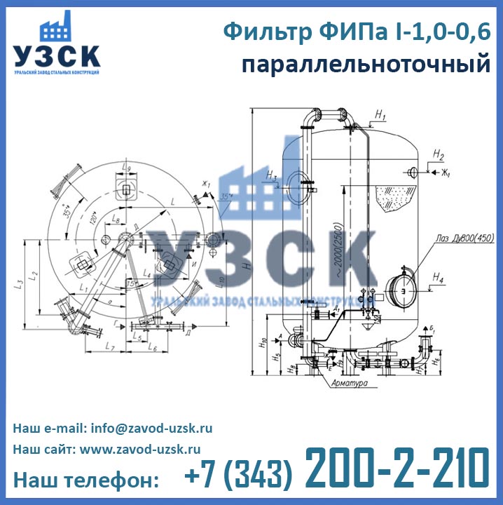 Для того, чтобы купить фильтр ФИПа1 1,0-0,6 в Краснодаре выгодно, необходимо обратиться непосредственно к производителю данного оборудования. Ведущий производитель фильтров для смягчения воды – Уральский Завод Стальных Конструкций – предлагает фильтры натрий-катионитные параллельноточные по низким ценам. Оформить заказ на изготовление фильтра ФИПаI 1,0-0,6 Вы можете по электронной почте, указанной в разделе «Контакты» или при помощи формы заказа, расположенной ниже.