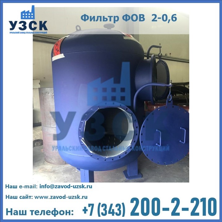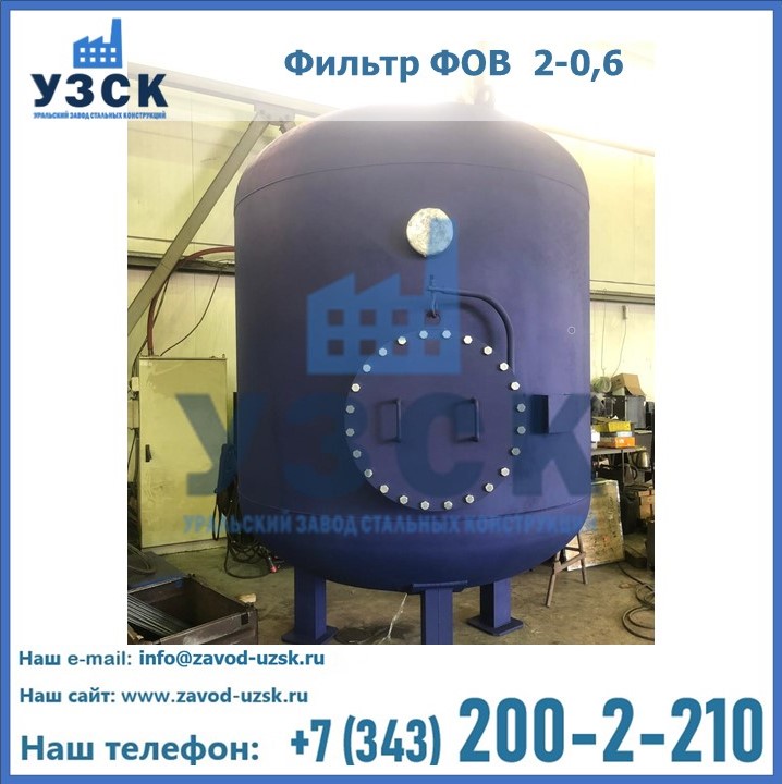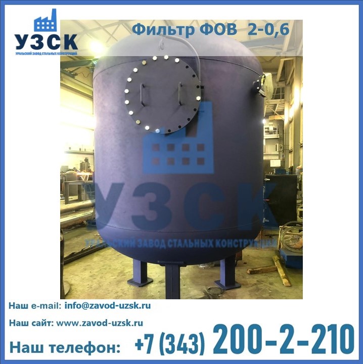 Удаление взвешенных веществ различного уровня дисперсности из рабочих жидкостей эффективно проводит фильтр осветлительный типа ФОВ (скорый или механический) — вертикально-цилиндрической формы установка, разработанная для систем водоподготовки различного класса. Оборудование представляет собой однокамерный агрегат для очистки воды рекомендованный для применения на станциях очистки стоков, в коммунальных котельных, на ТЭЦ, в промышленных отопительных системах и пр. Заказать производство ФОВ фильтров предлагает наш Уральский завод стальных конструкций в Краснодаре. У нас можно купить фильтрационное оборудование различного класса и типа, в том числе фильтры ФОВ из нержавеющей стали.